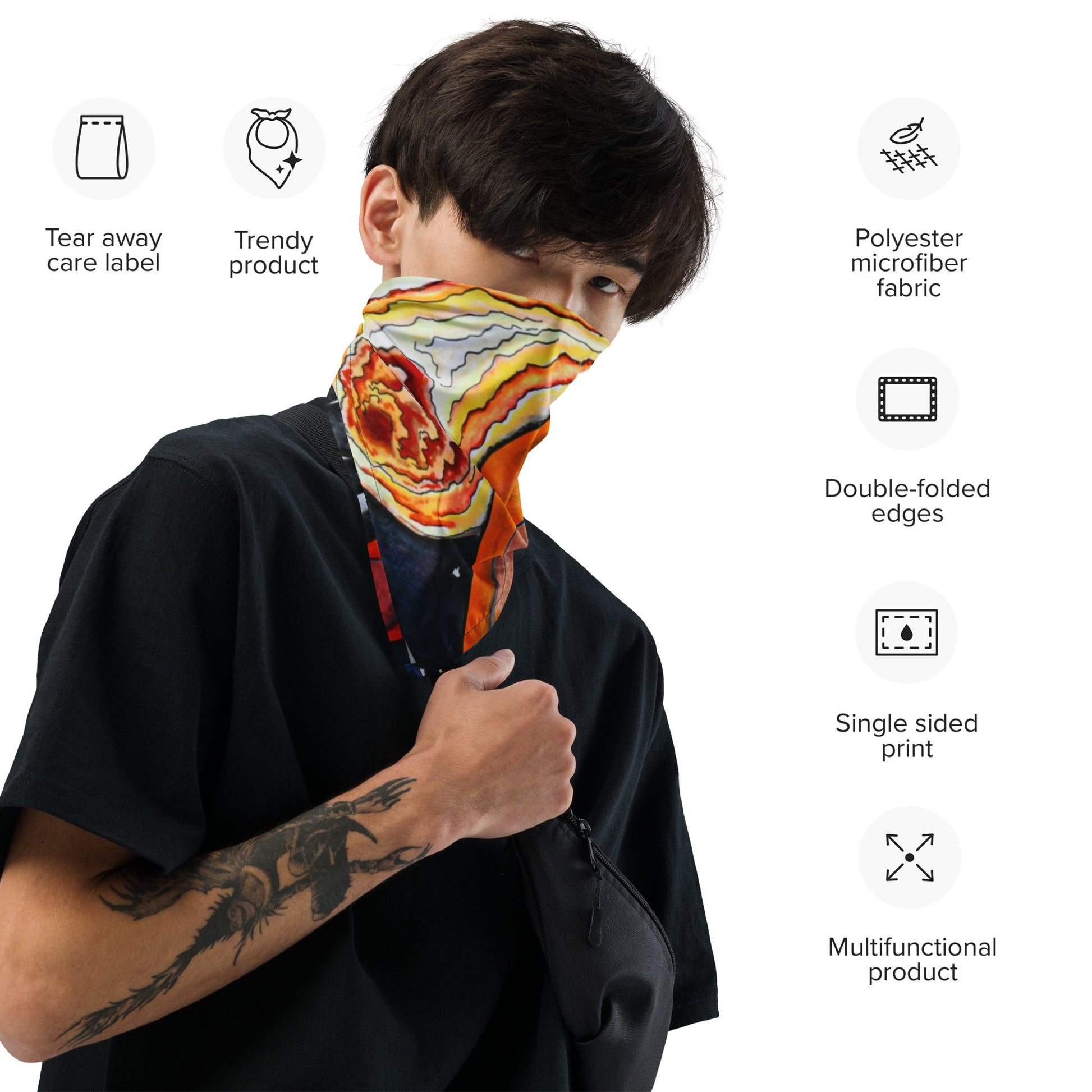 Get ready to make a statement with this all-over print bandana. Mix up your outfits by using this as a headband, necktie, or armband. In fact, why not get a second bandana to match your pet? Grab a few and hit the streets in style!