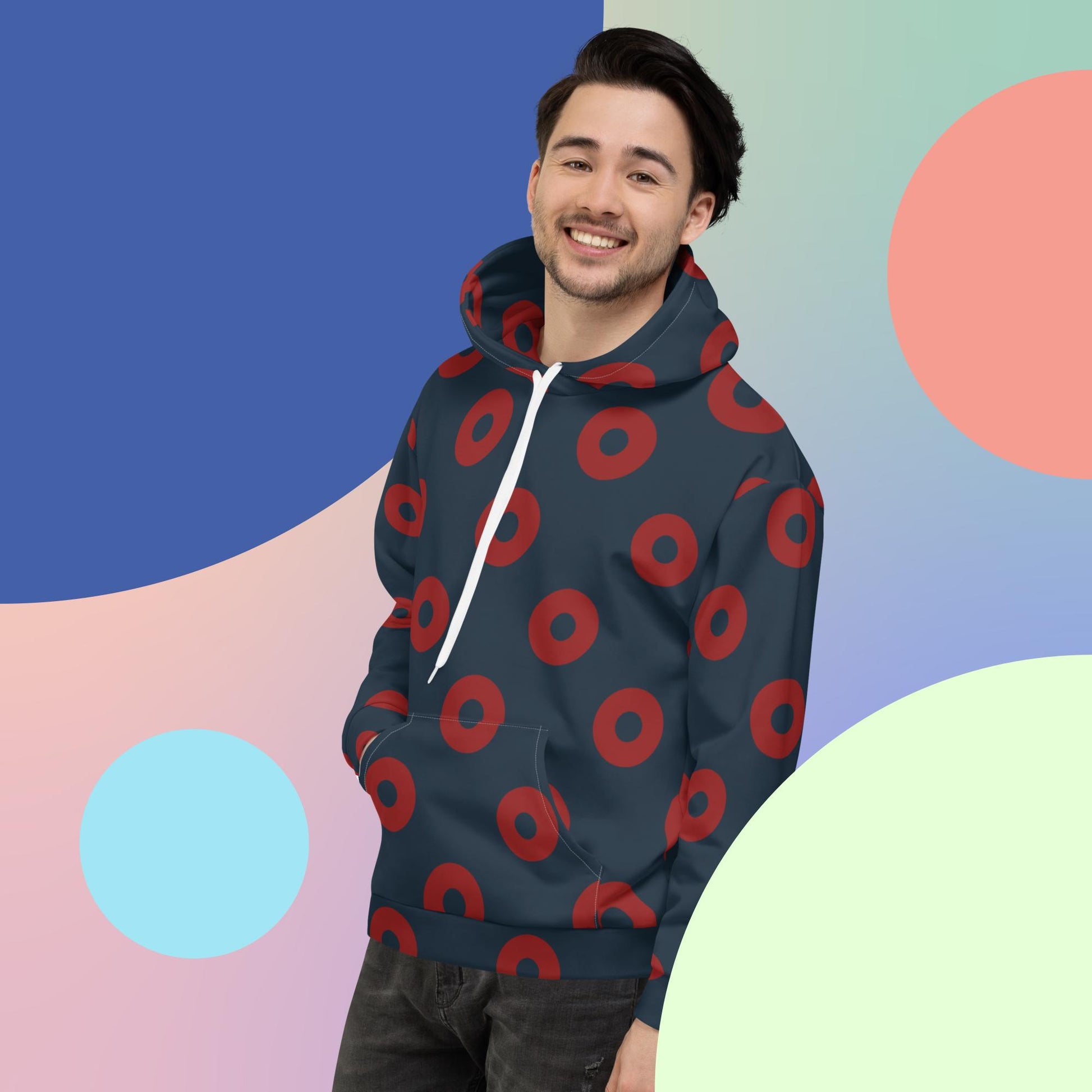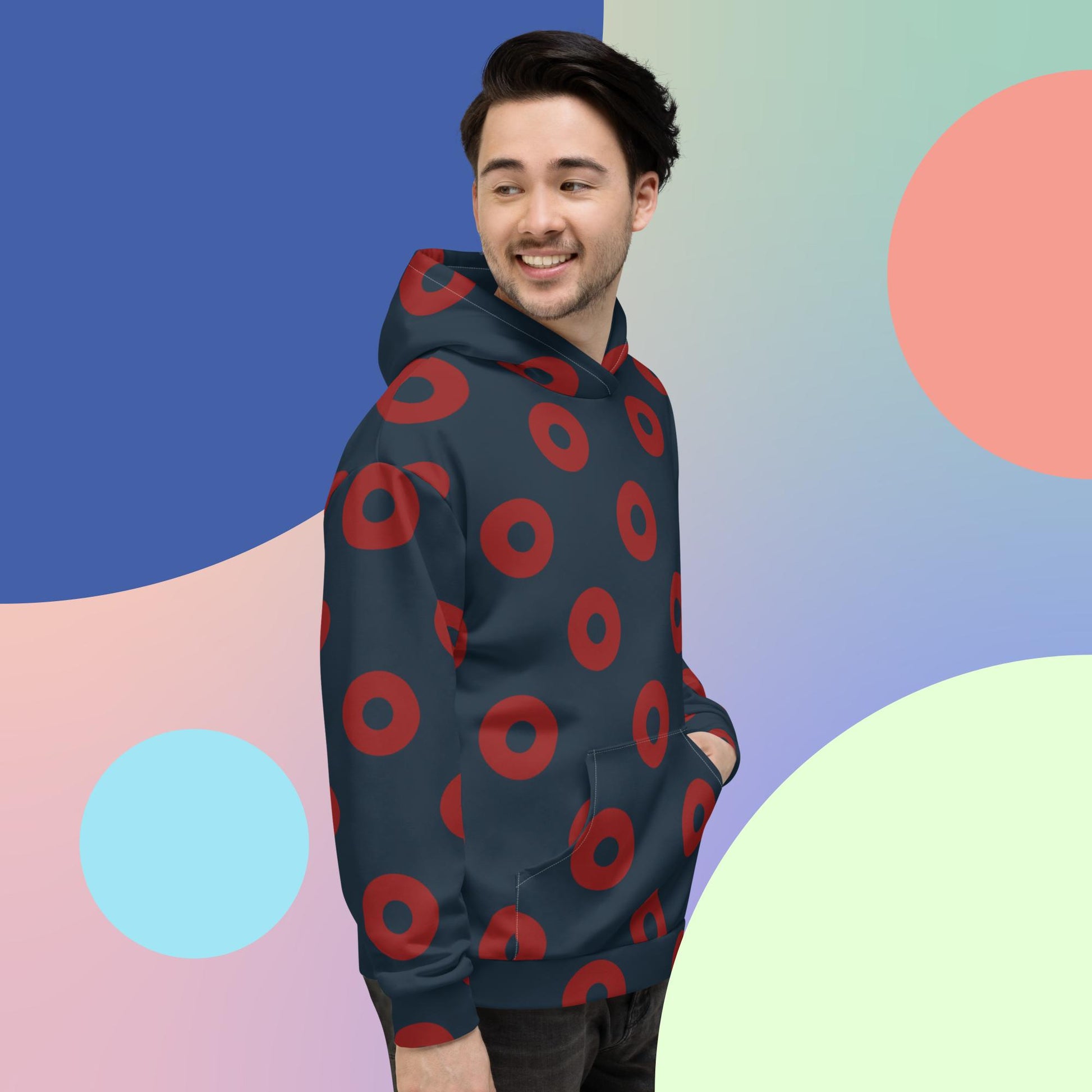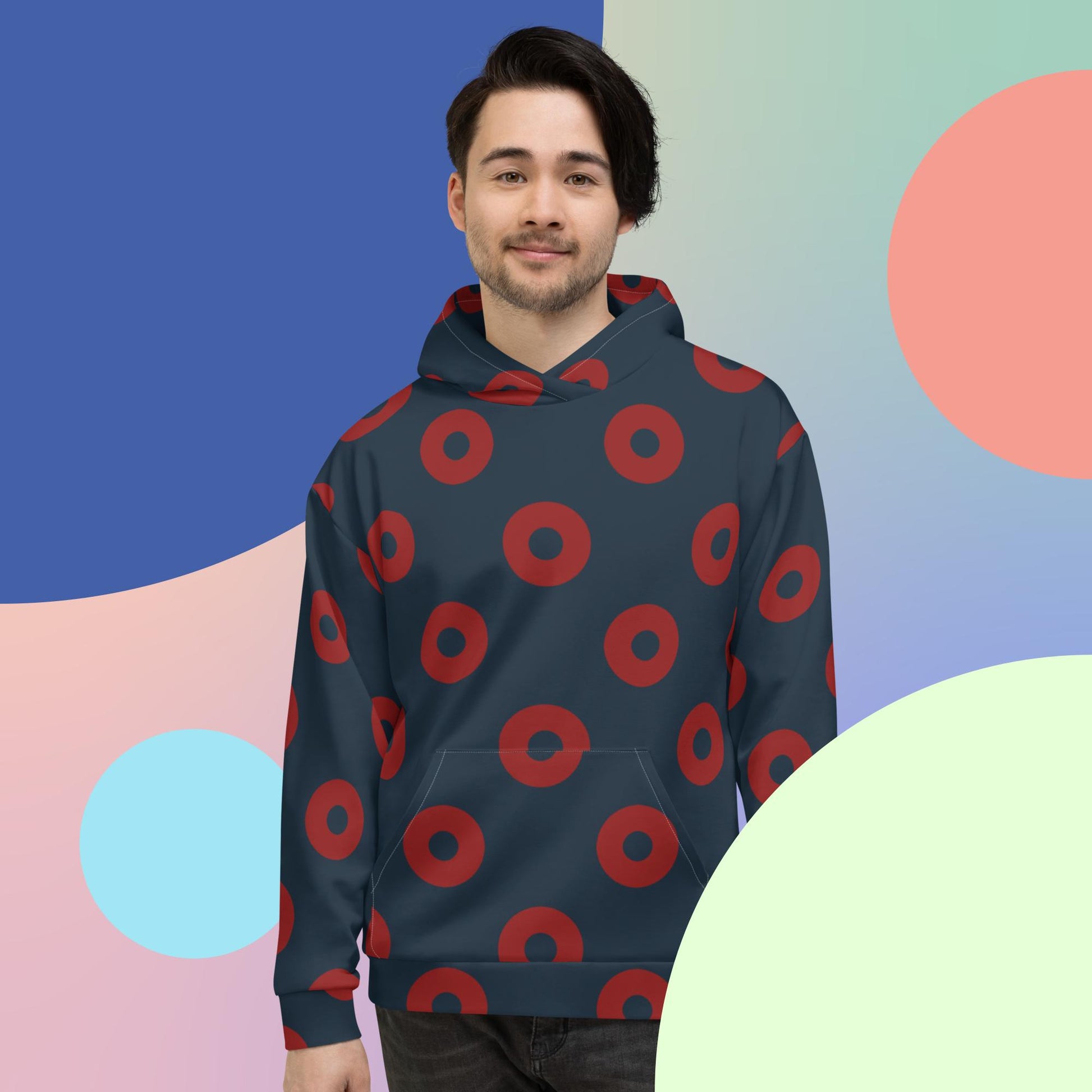 This comfy unisex hoodie has a soft outside with a vibrant print and an even softer brushed fleece inside. The hoodie has a relaxed fit, and it's perfect for wrapping yourself into on a chilly evening.